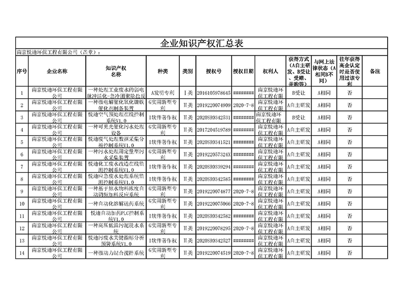 知识产权汇总表